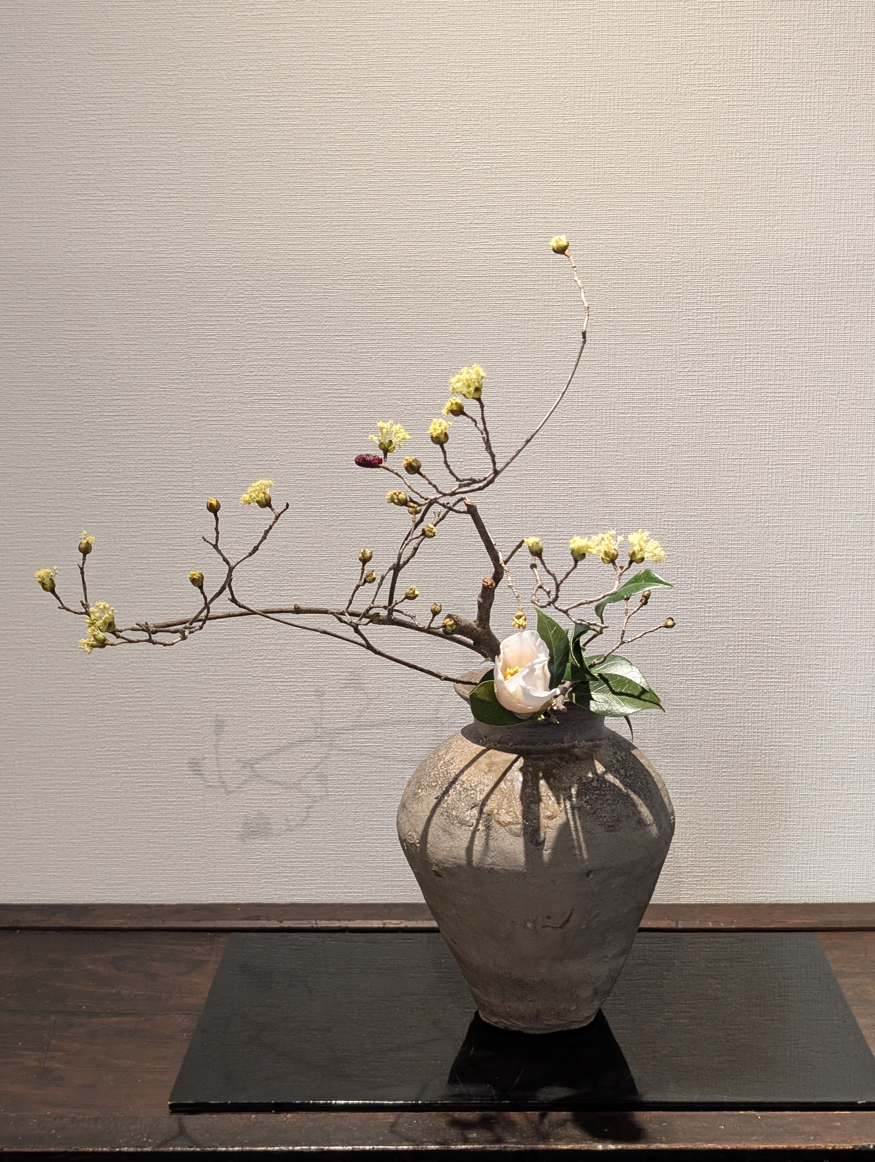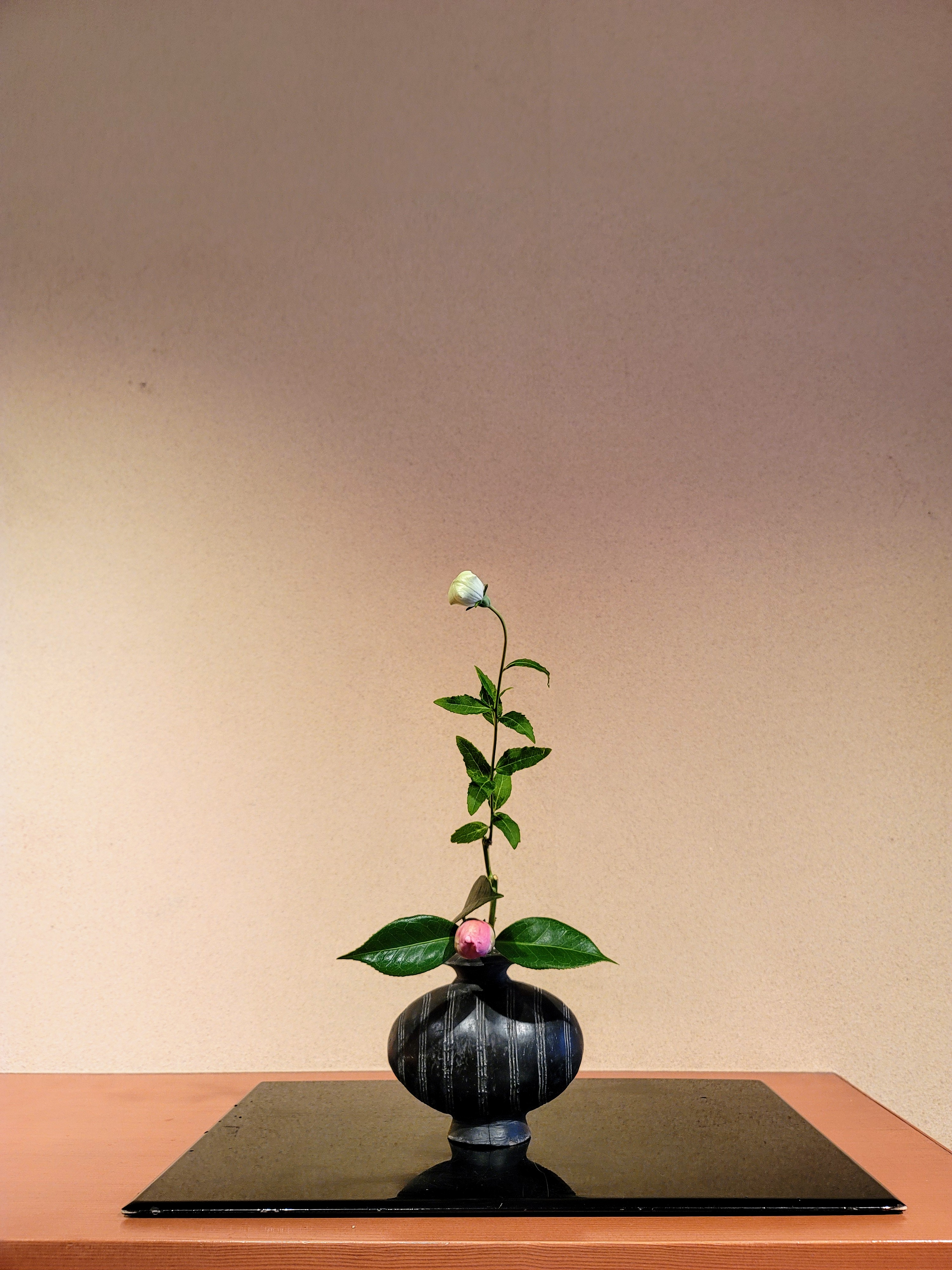 桔梗 椿 黒陶繭形壺 前漢時代BC206~AD25